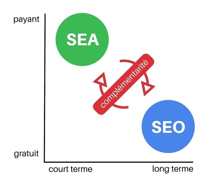 Nous allons nous intéresser ici au SEO (Search Engine Optimization), qui signifie littéralement optimisation pour les moteurs de recherche. Concrètement, cela consiste à utiliser un ensemble de techniques visant à hisser puis maintenir un site internet dans les premiers résultats de recherche sur Google pour un mot-clé donné.Différences avec le SEA
