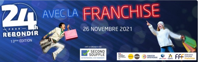 La 13e édition des journées « 24h pour REBONDIR » organisée par l’association SECOND SOUFFLE a décidé de mettre l'accent cette année, sur le modèle de la franchise. Ainsi, cette édition, coorganisée avec la Fédération Française de la franchise, se déroulera le 26 novembre 2021 dans un salon virtuel qui proposera des conférences toute la journée et des stands pour échanger avec les franchiseurs.