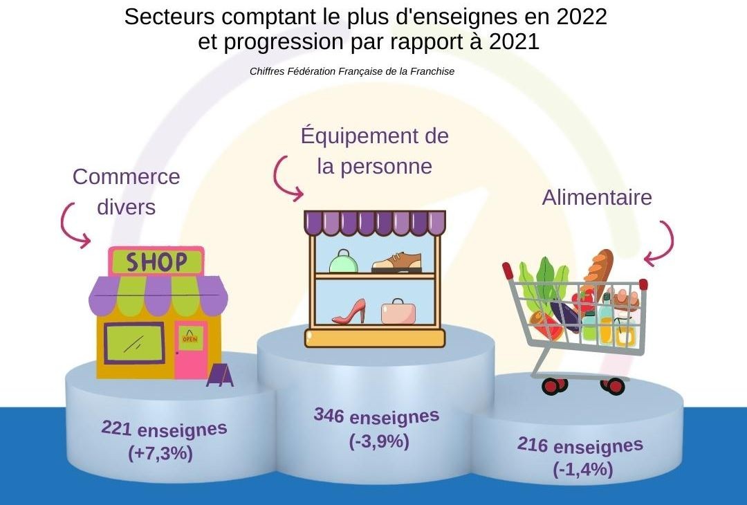 Le secteur du commerce divers* franchisé signe une excellente année 2022, générant un chiffre d’affaires de 7,33 milliards d’euros en 2022, en hausse de 8,6% par rapport à l’année précédente. Ces chiffres confirment la reprise d’activité post-covid.