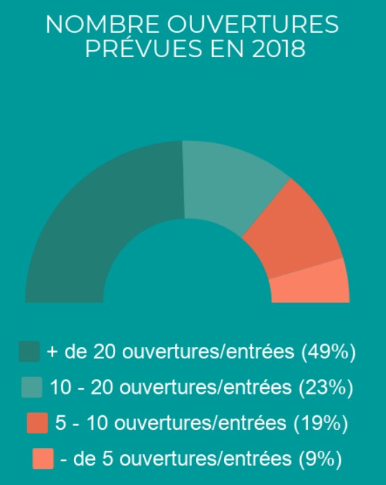 Et le développement des réseaux, en termes de nouveaux points de vente ou d’intégration de nouveaux entrepreneurs, devrait suivre la même tendance. Plus d’un groupement sur deux (53%) envisagent une accélération de leur développement par rapport à 2017. Près de la moitié (49%) tablent sur une vingtaine d’ouvertures minimum dans l’année et au moins une dizaine pour 72% des sondés.