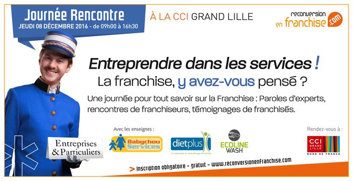 Inscription gratuite : http://www.reconversionenfranchise.com/110/entreprendre-en-franchise-a-lille-journee-rencontre