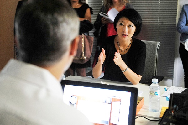 | Cette société spécialisée dans la création d’outils de marketing et de communication 3D a conçu la plateforme de Salons Virtuels V3D Events, utilisée notamment par le Salon Virtuel des Franchises. Dans le cadre d’une démonstration avec Jérôme Vossot, organisateur de ce dernier, la Ministre a pu avoir un aperçu de l’évènement en se connectant en tant qu’exposant, et en utilisant les différentes fonctionnalités des stands. Mme Pellerin a également pu se connecter à l’espace conférence de la plateforme pour avoir une présentation du concept du salon. |