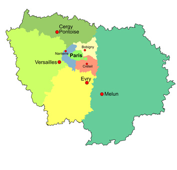 | > L’Ile de France avec ses 11,7 millions d’habitants (19% de la population nationale) est la première région économique de France et l’une des métropoles les plus dynamiques du monde. La région Ile-de-France englobe Paris et sa couronne. La région est composée de 8 départements et 1 281 communes. Les départements de la petite couronne sont les Hauts-de-Seine, la Seine-Saint-Denis et le Val-de-Marne et ceux de la grande couronne sont la Seine-et-Marne, les Yvelines, l’Essonne et le Val-d’Oise. L’ensemble de ces départements couvre 12 012 km² soit 2,2 % de la surface métropolitaine. La densité de population en Ile-de-France est de 960 habitants/km² (117 habitants/km² en France métropolitaine).