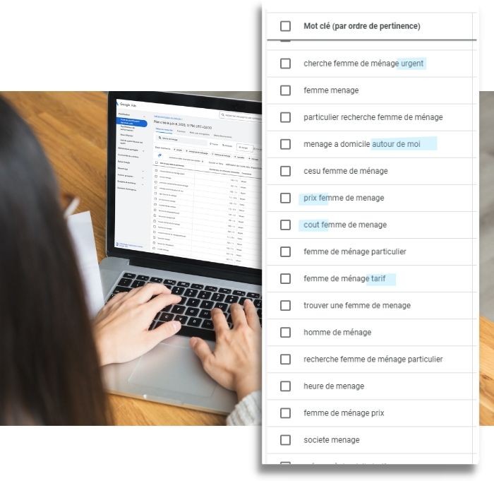 Il convient d’établir votre stratégie de communication digitale en fonction de votre offre de services. Si vous proposez différentes typologies de services, il faut donc prévoir une stratégie distincte pour chaque catégorie : garde d’enfants, entretien du domicile, aide aux seniors, etc. L’idée est d’établir, pour chaque activité, une liste de mots clés pertinents afin de positionner les différentes pages de votre site dans les résultats des moteurs de recherche.