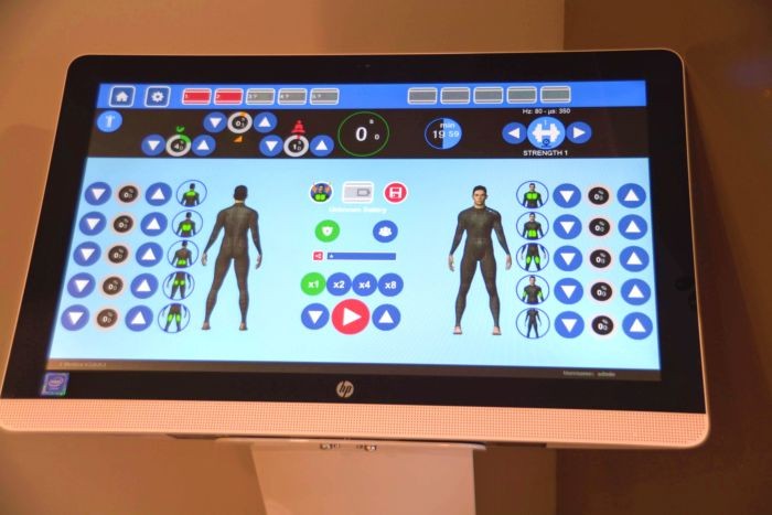 Le principe : l’utilisateur porte une tenue comprenant huit à dix paires d’électrodes provoquant une contraction des muscles, pour des exercices en profondeur, mais en douceur. Impossible de se faire mal avec ce système qui s’adapte à chaque utilisateur et qui permet en outre de réaliser l’équivalent de 3 à 4 heures de sport en l’espace de 20 minutes, en stimulant un maximum de muscles simultanément, généralement autour de 300 muscles.