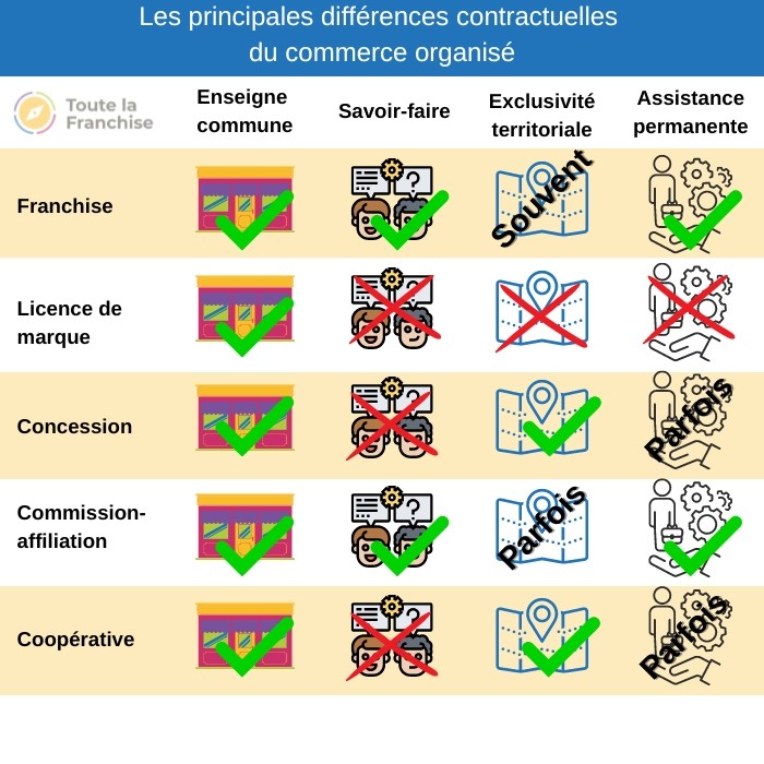 Franchise, coopérative, licence de marque, concession, affiliation, gérance : les différentes formes du commerce organisé