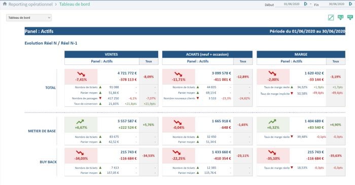- Dans le temps, mesurer son évolution par rapport au reste du réseau, « je suis passé de la 35e place à la 23e en chiffre d’affaires entre 2019 et 2020, en revanche j’ai perdu 3 places en satisfaction client ».