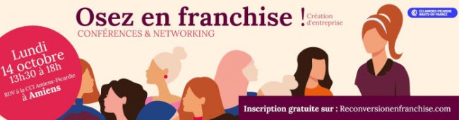 Le 14 octobre prochain, à Amiens, reconversionenfranchise.com et la CCI Picardie organisent une journée rencontre dédiée à l'entrepreneuriat au féminin en franchise, en présence de 4 franchiseurs (Midas France, La Pizza de Nico, Heytens et CBD.FR) et de femmes franchisées.