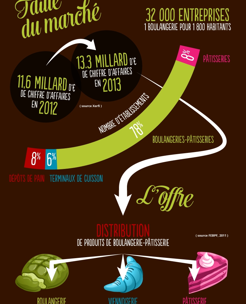 En complément de cet article, le cabinet Territoire et Marketing nous propose, en infographie, un état des lieux du marché de la Boulangerie :
