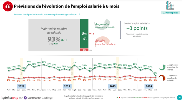 Ils n’en restent pas moins prudents dans leurs perspectives, préférant notamment miser sur un maintien de leurs salariés actuels plutôt que sur des recrutements. 93% des dirigeants interrogés se sont ainsi déclarés soucieux de maintenir leurs effectifs actuels au cours des six prochains mois, tandis que 5% seulement annoncent vouloir recruter de nouveaux salariés.
