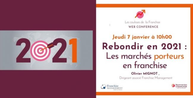 Parce que créer son entreprise même en temps de crise, c’est possible, deux experts de la franchise ont souhaité organisé ensemble une web-conférence sur le thème « Rebondir en 2021 : les marchés porteurs en franchise », pour mettre en lumière les opportunités qui s’offrent aux porteurs de projet malgré la conjoncture économique difficile.