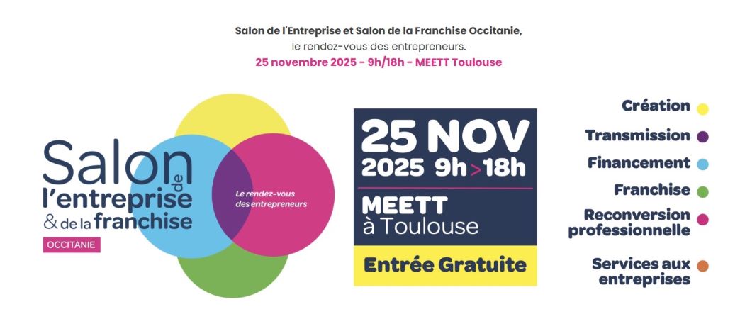 Le Salon de l’Entreprise et de la Franchise Occitanie fait son retour au MEETT de Toulouse, le 25 novembre 2025, pour une 21ᵉ édition placée sous le signe de l’entrepreneuriat, de la reconversion et de l’innovation en franchise.