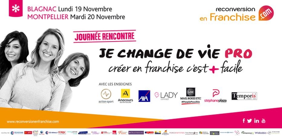 Pour ses prochaines journées, Corinne Gicquel a choisi de faire appel aux réseaux Action Sport, Anacours, AXA, Lady Concept, Mail Boxes Etc., Stéphane Plaza Immobilier et Temporis afin de les inviter à échanger avec les participantes intéressées par une création d’entreprise en Occitanie. Ils seront ainsi présents le lundi 19 novembre à Blagnac et le mardi 20 novembre à Montpellier.