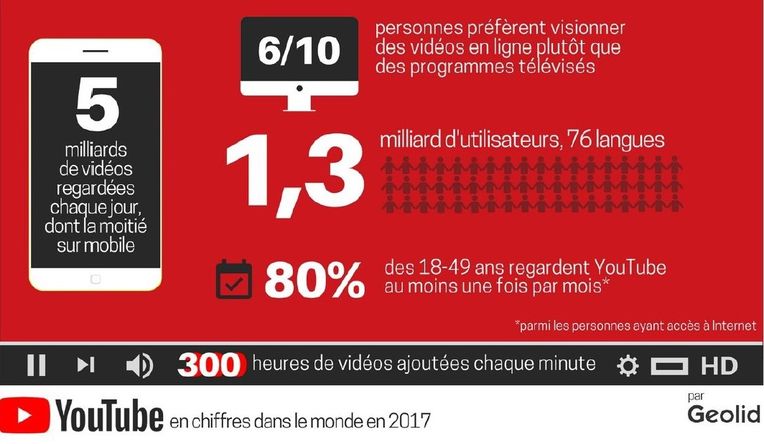 - 5 milliards de vidéos regardées chaque jour dont la moitié sur mobile