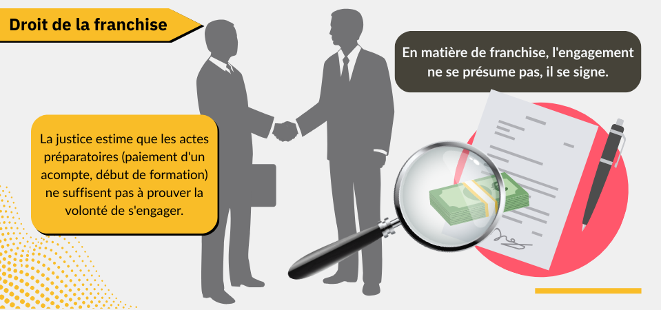 Vu de l’extérieur, et certainement vu du siège de l’enseigne, l’affaire semble conclue. Les fonds sont là, l’intention est là. Pourtant, une pièce manque au puzzle : le contrat de franchise n’a jamais été signé.