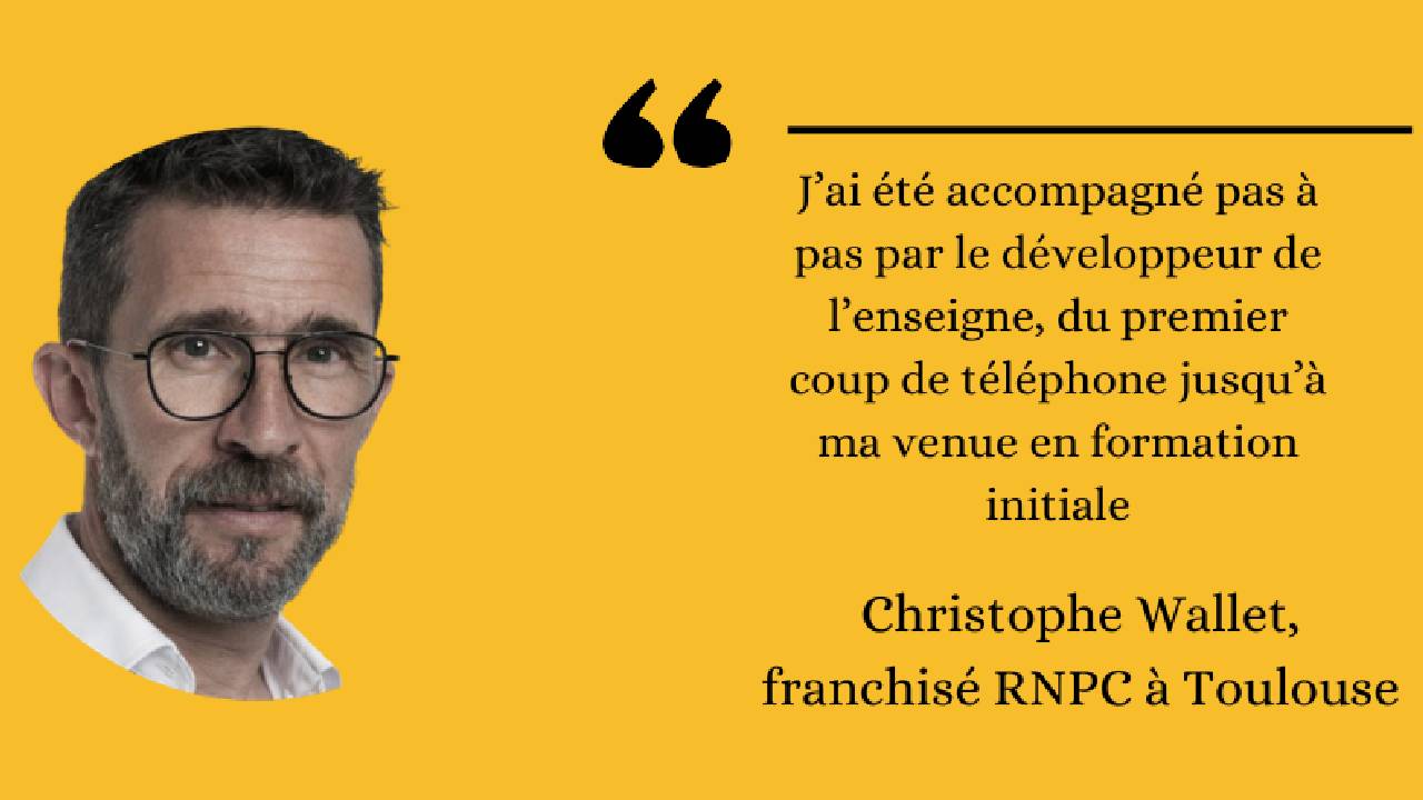 “J’ai été accompagné pas à pas par le développeur de l’enseigne, du premier coup de téléphone jusqu’à ma venue en formation initiale”, Christophe Wallet, franchisé RNPC à Toulouse