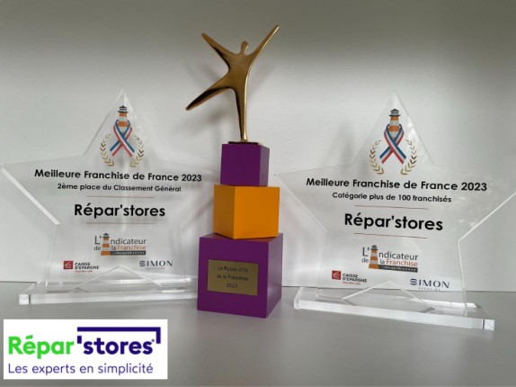 Lors de la dernière édition du salon Franchise Expo à Paris qui vient d’avoir lieu, Repar’stores a été élue meilleure franchise de France et a également pris la deuxième place dans la catégorie “meilleure franchiseur de l’année" aux Trophées des Meilleures Franchises de France, organisés par l’Indicateur de la Franchise, et ce avec un taux de 95.8 % de satisfaction générale.