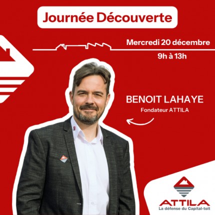Le 20 décembre prochain, de 9h à 13h, ATTILA, le premier réseau national spécialisé dans la réparation, l’entretien et la maintenance de tous types de toits, organisera une nouvelle journée découverte en visioconférence.