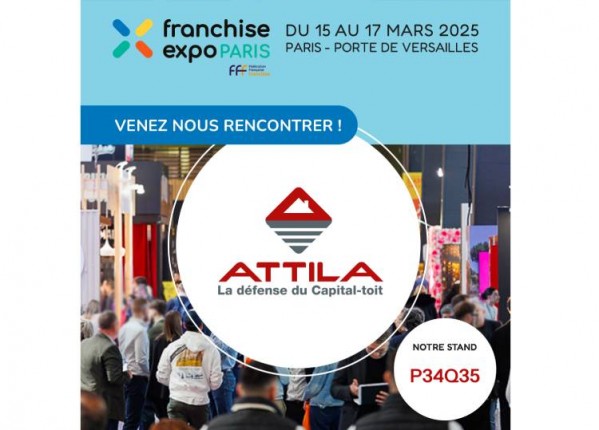 Du 15 au 17 mars 2025, ATTILA, premier réseau national spécialisé dans la réparation, l’entretien et la maintenance de tous types de toitures, sera présent au Salon Franchise Expo Paris. Rendez-vous à Paris Porte de Versailles, stand P34-Q35, pour découvrir les opportunités offertes par l’enseigne et échanger avec ses équipes.