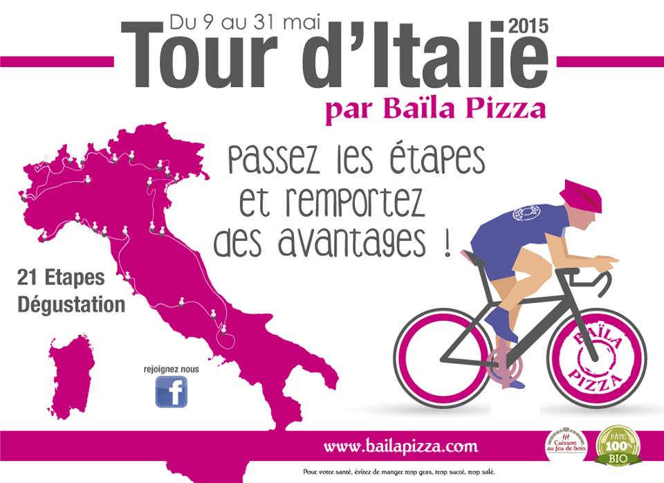 A l’occasion de l’épreuve cycliste du Giro, le tour d’Italie, l’enseigne Baïla Pizza emmène ses clients faire leur propre tour de l’Italie, mais du point de vue des saveurs !