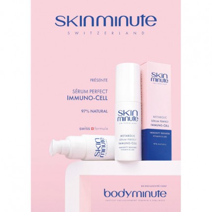 La franchise d’instituts de beauté Body Minute vient de dévoiler une nouvelle création pour sa gamme de cosmétiques, sous la MDD Skinminute Switzerland : le soin de peau Sérum perfect Immuno-Cell, désormais en vente dans tous les instituts de beauté du réseau.