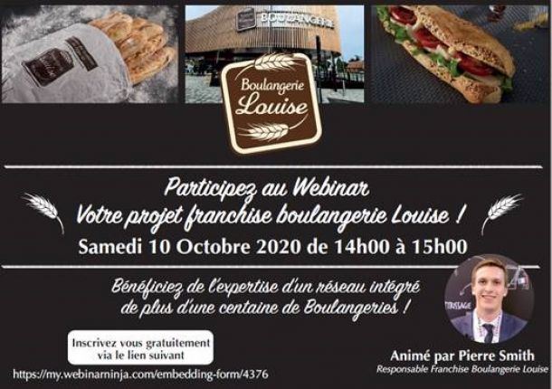 Suite au report du Salon Franchise Expo de Paris à 2021, l’enseigne Boulangerie Louise a souhaité maintenir un rendez-vous d’échange avec les porteurs de projet. Ainsi, le réseau a décidé d’organiser un webinar, intitulé « Votre projet franchise Boulangerie Louise », le samedi 10 octobre, de 14h à 15h, animé par Pierre Smith – Responsable Franchise. L’occasion pour les entrepreneurs intéressés par le concept de la marque de découvrir le réseau, les différentes modalités d’intégration, et poser toutes leurs questions.