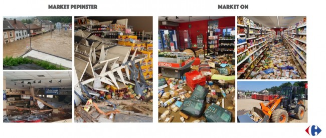 Carrefour a participé à l’action Comeos Care, initiée par l’association des distributeurs de Belgique. Les sinistrés peuvent, munis de l’attestation fournie par leur assurance, bénéficier d’une réduction de 25% dans 7 Hypermarchés Carrefour de la région à l’achat de petit et grand électroménager ou d’une télévision du 4 août au 4 septembre.