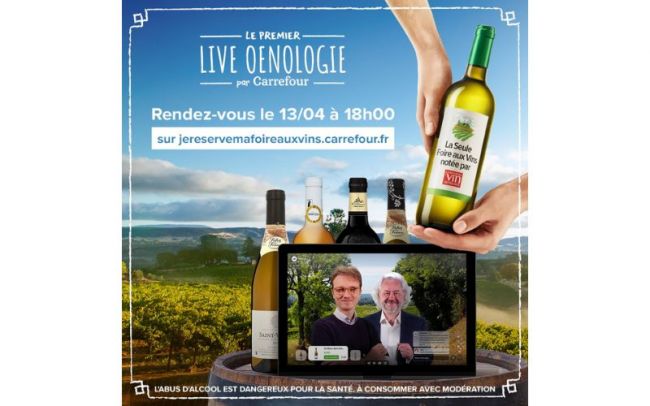 Alors que la foire aux vins de printemps de Carrefour suit son cours jusqu'au 19 avril, l'enseigne innove en proposant une session de live shopping en présence d'un œnologue ce mardi 13 avril à 18h.
