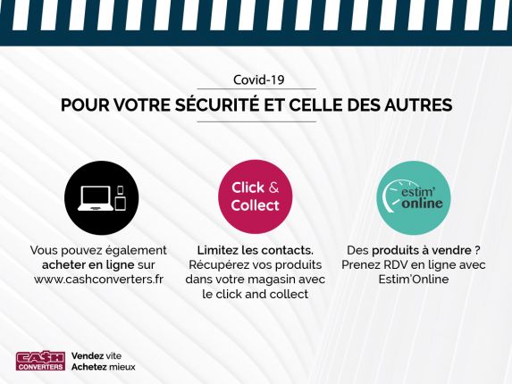 Côté achat, si l’espace de vente est optimisé pour favoriser la régulation des flux et les distances de sécurité, Cash Converters invite néanmoins la clientèle à prioriser le click and collect, avec le retrait gratuit en magasin.