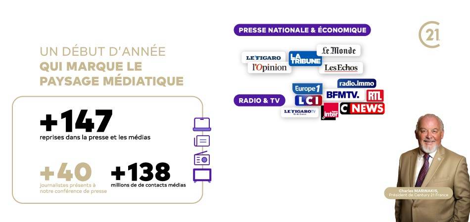 L’analyse du marché, portée par Charles Marinakis, Président de CENTURY 21 France, a été reprise par de nombreux médias nationaux et économiques de premier plan, parmi lesquels Le Monde, Les Échos, Le Figaro, L’Opinion, ainsi que sur France Inter, Europe 1, LCI, BFM Business, Figaro TV, CNEWS et lors du Grand Jury de la presse immobilière. Ces prises de parole confirment la reconnaissance de CENTURY 21 comme référent du marché immobilier auprès des médias.