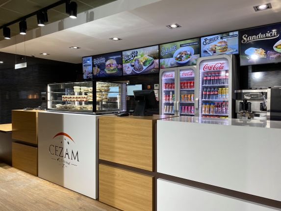 Le concept de restauration « CEZAM » a été créé en 1998. L’idée est de proposer à la clientèle des plats Brasserie et des Sandwiches préparés à la commande, constitués de produits frais et halal, dans une atmosphère décontractée.
