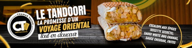 La franchise Chamas Tacos ne cesse d’innover pour séduire les consommateurs. La dernière création en série limitée de l’enseigne : le Tandoori, un tacos à l’escalope de poulet épicée avec une recette secrète, pour « un voyage oriental tout en douceur ».