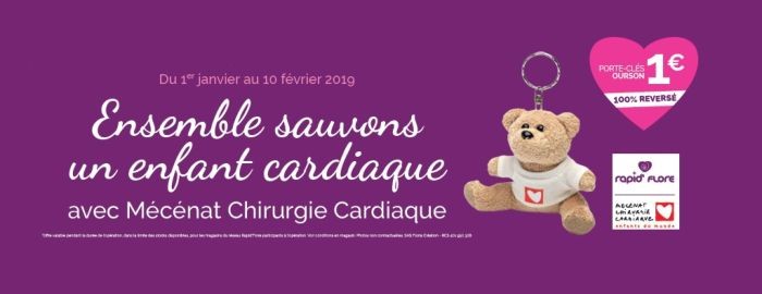 Du 1er janvier au 10 février 2019, les points de vente Rapid’Flore / Cœur de Fleurs se mobilisent en faveur de l’opération “Du cœur pour un nouveau cœur avec Mécénat Chirurgie Cardiaque”.