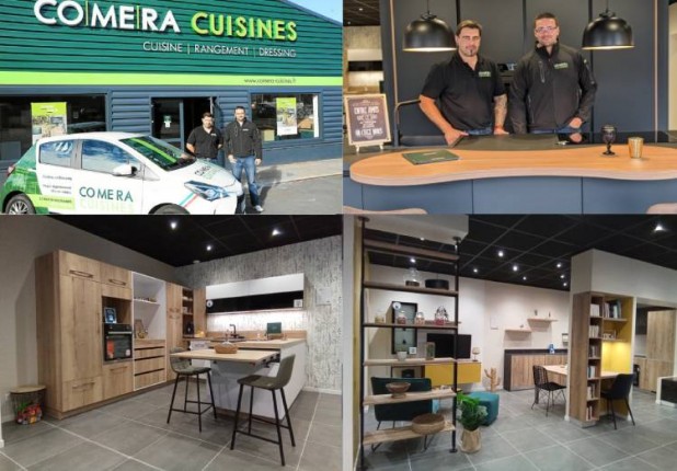 COMERA Cuisines Morlaix : une adresse à retenir ! Le nouvel établissement de COMERA Cuisines s’affirme comme une destination incontournable à Morlaix. À travers les allées soigneusement aménagées du magasin, chaque client est invité à plonger dans l’univers captivant de cette enseigne renommée. Chaque espace offre une expérience sensorielle unique, mettant en scène des créations telles que le naturel apaisant de “Petite Amazonie”, la pureté éclatante d’“Orion”, et l’harmonie dualiste de “Equilibre” en Gris Perle et Gris Orage, jusqu’au raffinement sophistiqué de l’atelier du plan de travail du modèle “Dièse”. Les clients seront assurément séduits par les teintes vibrantes de “Cocon” et son Bleu Paon, ainsi que par les deux visages de l’espace cuisine-salon avec la proposition élégante “Viva Appartement”, arborant des façades aux décors Chêne Millésime et Ardoise laquée. Enfin, ils pourront s’immerger dans l’ambiance chaleureuse de “Loft Salon” et sa teinte jaune curry, tout en découvrant la vedette de l’établissement, “Bohème” – un véritable hymne à l’authenticité d’un art de vivre raffiné. « L’Origine France Garantie » : une évidence pour les nouveaux concessionnaires du réseau Pour les nouveaux concessionnaires du réseau, Anthony et Victory, associés et frères de cœur, le choix de la marque COMERA Cuisines s’ancre dans une vision locale où “L’Origine France Garantie” n’est pas simplement une mention, mais un véritable engagement. Ancien formateur et animateur au sein d’une grande enseigne, Anthony partage sa passion éducative, tandis que Victory, artisan-menuisier-installateur chevronné, apporte son savoir-faire artisanal. Leur choix de la marque s’est cristallisé autour de critères décisifs tels que la proximité avec les partenaires régionaux, la qualité des produits, et les finitions minutieuses, allant de l’armoire épicerie de “Bohème” aux plans de travail ingénieusement imbriqués de “Dièse”. Une visite de l’usine a confirmé la qualité irréprochable des cuisines COMERA. Enfin, le relationnel exceptionnel et l’accompagnement sur mesure des équipes COMERA Cuisines ont scellé cette collaboration fructueuse. Pour eux, le choix de cette marque s’est imposé d’emblée : « l’Origine France Garantie est une notion qui résonne en nous. Tous nos partenaires travaillent dans la région ; pour nous le local, ce n’est pas juste sur le papier. La qualité du produit et les finitions, comme l’armoire épicerie de Bohème, les plans de travail imbriqués de Dièse, ont été des éléments clefs et la visite de l’usine a fini de valider notre choix. Enfin le relationnel et l’accompagnement des équipes COMERA Cuisines ont terminé de nous convaincre ». >> Lire aussi : Comera Cuisines dévoile son nouveau catalogue