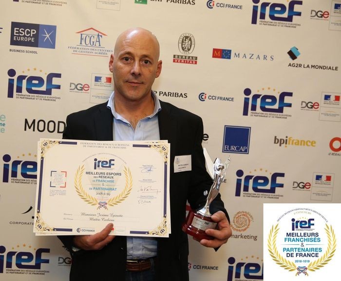 Ce prix remis à Jérôme Epinette, fondateur de l’enseigne, est une nouvelle reconnaissance pour le concept Maître Corbeau. Sélectionnés sur la base de leur performance économique et de leur dynamisme, de leur insertion dans l’environnement local ou encore de leur accueil client, les lauréats du concours IREF des Meilleurs franchisés & Partenaires de France reçoivent un Trophée et un diplôme attestant de leurs qualités de commerçant.