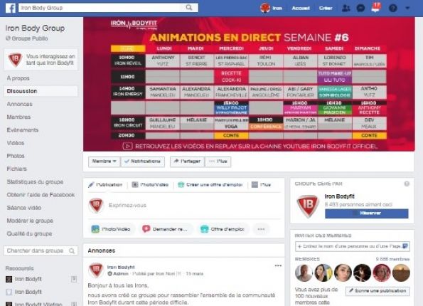 Tout au long du confinement, Iron Bodyfit permet à sa communauté de rompre l'isolement en manifestant sa présence sur les réseaux sociaux, avec notamment son groupe Facebook qui accueille aujourd'hui 10.000 membres.