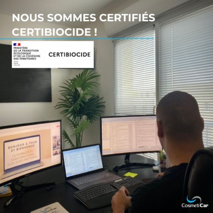 Pionnier du lavage automobile sans eau, CosmétiCar renforce une fois de plus son engagement environnemental en obtenant la certification Certibiocide.