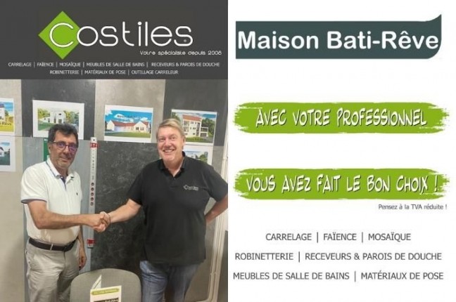 Fort de son expérience et attaché à entretenir une grande proximité auprès des artisans, Costiles Carrelages & Bains noue des partenariats avec des acteurs régionaux de la construction et de la rénovation. Récemment, le réseau vient ainsi de conclure un partenariat avec la société Bati-Rêve, entreprise mosellane spécialisée dans la maçonnerie et le gros-œuvre et qui a progressivement développé une expertise dans la maîtrise d’œuvre pour les projets de construction de maisons individuelles.