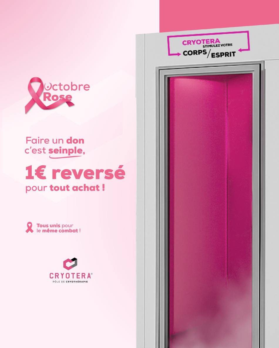 Du 1er au 31 octobre 2025, 1 € sera reversé à une association locale œuvrant pour la recherche, la prévention et l’accompagnement des patientes, pour chaque séance effectuée dans un centre Cryotera. Une initiative simple et concrète qui permet à chaque client de contribuer directement à la lutte contre le cancer du sein, tout en prenant soin de sa santé et de son bien-être.