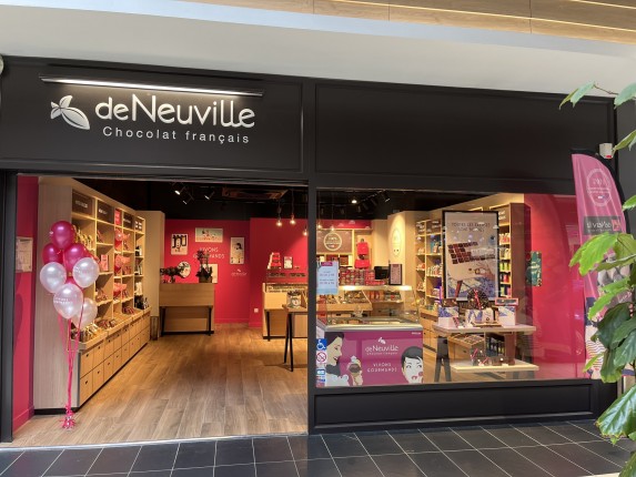 Une nouvelle boutique De Neuville présente désormais les chocolats de la marque au sein de la galerie marchande du centre commercial E. Leclerc de Plérin, près de Saint-Brieuc, dans les Côtes-d’Armor.