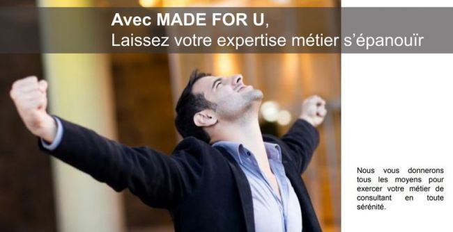 Que vous soyez en pleine reconversion professionnelle pour devenir consultant ou déjà installé comme consultant indépendant, le réseau Made For U vous propose de nombreuses opportunités de carrière. Echanges, partage et innovation sont en effet au cœur du concept développé depuis 2003 par cette enseigne spécialisée dans le conseil aux entreprises. « Notre leitmotiv est le respect de votre indépendance tout en vous apportant un maximum de soutien, à la carte, via des outils innovants et des méthodes éprouvées », explique le groupe, qui précise « Nous vous donnerons tous les moyens pour exercer votre métier de consultant en toute sérénité ».