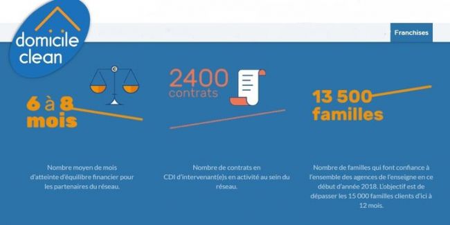 Pour ouvrir une agence Domicile Clean, il faut un apport personnel compris entre 8.000 € et 10.000 €. Le budget global de lancement est compris entre 32 et 35000€. En moyenne, les partenaires du réseau qui s’installent atteignent l’équilibre financier entre six et huit mois.