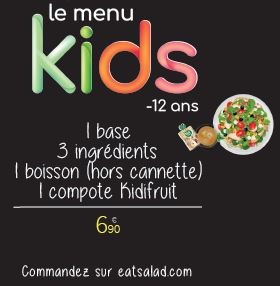 Le menu KIDS est enfin arrivé au sein du réseau Eat Salad® : un menu adapté pour vos enfants de moins de 12 ans.