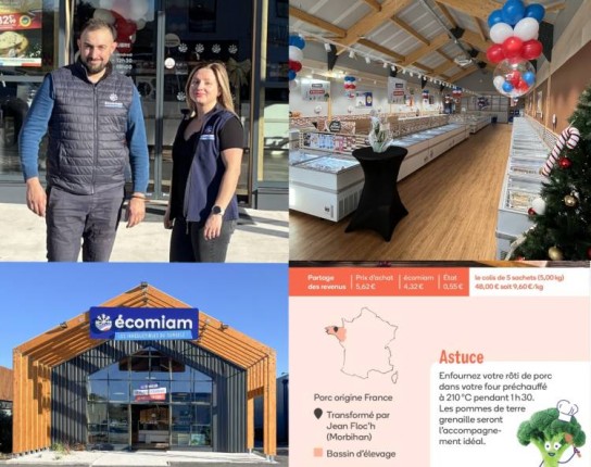 Une alimentation 100% origine France, éthique et responsable Situé entre le restaurant La Boucherie et la Cave chez Xavier, le nouvel Écomiam de Pamiers incarne l’engagement de l’enseigne en faveur d’une consommation responsable et 100% française. Fondée par Daniel Sauvaget, fils d’agriculteur et président d’Écomiam, le réseau se distingue par son soutien aux filières agricoles et agroalimentaires françaises. Fidèle à ses valeurs, ce nouveau magasin propose une sélection de produits à la fois savoureux, accessibles et respectueux de l’environnement. Les produits, récoltés à parfaite maturité, sont surgelés immédiatement pour garantir leur fraîcheur tout au long de l’année. La transparence est au cœur de l’expérience client : chaque produit affiche son origine française ainsi que la répartition du prix entre le fournisseur, Écomiam et l’État, illustrée sur une carte de France. L’objectif est d’offrir des produits de qualité à des prix justes, tout en valorisant les filières locales. L’enseigne réduit également ses coûts grâce à un conditionnement minimaliste : des sachets transparents, souvent sous vide, qui préservent les qualités des produits et permettent une visualisation directe. Une démarche qui allie simplicité, éthique et respect du consommateur. Une offre transparente et économique Écomiam propose une sélection de 450 produits, dont 75 % de produits bruts et 25 % de produits élaborés, comprenant viandes, poissons, légumes, desserts et recettes simples. L’enseigne se distingue par ses innovations, notamment les “Gamelles gourmandes”, des plats traditionnels individuels prêts à déguster, et les “Paniers malins”, des assortiments d’ingrédients accompagnés de fiches-recettes permettant de préparer cinq repas pour quatre personnes, le tout pour moins de 2,50 € par personne et par repas. Écomiam mise sur la transparence en affichant l’origine et les prix de ses produits, tout en adoptant un conditionnement minimaliste avec des sachets transparents, souvent sous vide, afin de préserver la qualité des aliments tout en réduisant les coûts. L’ensemble de la gamme est accessible sur le site officiel d’Écomiam, où les clients peuvent profiter des services de click and collect ou de livraison rapide en 24/48h. >> Lire aussi : Écomiam : du surgelé 100% français qui cartonne en franchise !