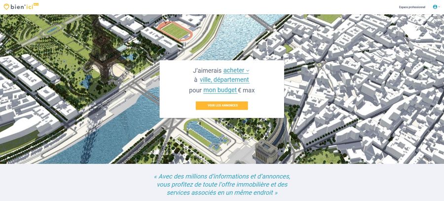 Bien plus qu’un énième site d’annonces immobilières, bien’ici se présente comme un moteur de recherche immobilière géolocalisée qui prend en considération, non seulement le bien immobilier, mais également son environnement proche. Concrètement, bien’ici permet de rechercher des biens immobiliers géolocalisés et d’obtenir, sur chaque fiche de présentation d’un bien, une multitude d’informations sur les commerces et services à proximité. A l’initiative de ce projet, plusieurs acteurs parmi lesquels les syndicats, les principales enseignes immobilières actives en France et les promoteurs immobiliers.