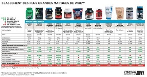 Depuis sa création en 1999, FitnessBoutique a à cœur de proposer à ses clients les meilleurs produits du marché. C’est notamment le cas pour les protéines mises en ventes : ces compléments alimentaires doivent être dûment surveillés afin d’être efficaces et non dangereux pour la santé. Le 1er juin 2018, l’Institut National de la Consommation a publié la première enquête sur les compléments alimentaires dédiés aux sportifs afin de comparer les marques présentes sur le marché. Cette étude scientifique de grande ampleur a permis de tester et comparer la qualité des marques de Whey. Parmi les 12 produits les plus consommés, ce sont les produits Whey Native et Harder qui sont arrivés en tête du classement. Cette enquête a permis de mettre en avant les marques qui proposaient des produits avec une composition et une fabrication de qualité.