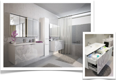 Si l’envie de voyager dans un décor envoutant vous tente, FLOWER est la fine fleur des salle de bains pour partager cette escapade. Son élégance, sa ligne svelte, ses tonalités douces rehaussées par un motif à fleur… de meuble, confèrent à cet espace une beauté sans pareil. On ne peut imaginer meilleure compagnie pour profiter de ces instants de détente… comme une fleur.