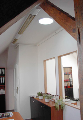- d’équiper vos entrepôts, halls d’usine et centres commerciaux transformés en espaces lumineux, sans être obligé d’allumer l’éclairage électrique et d’en payer la facture. Un conduit de lumière peut éclairer à lui seul une surface de 6 à 50 nm2.