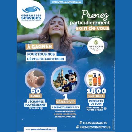 Grâce à un partenariat avec Yves Rocher, l’enseigne Générale des Services distribue ainsi à chaque salarié des agences du réseau, franchisées et succursales, une carte à gratter permettant aux collaborateurs et collaboratrices de gagner :
