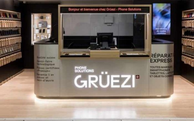 Créé en 2008, le réseau Grüezi-Phone Solutions propose à ses clients des magasins et/ou corners constitués à la fois d’un espace de vente (accessoires et système de protection) et d’un atelier d’électronique. L’animation de cet espace commercial singulier, qui peut être décliné soit sous forme de boutique, soit sous forme de corner situé au cœur d’un centre commercial, est confiée à un technicien spécialisé dont la formation est assurée par l’Académie Grüezi.